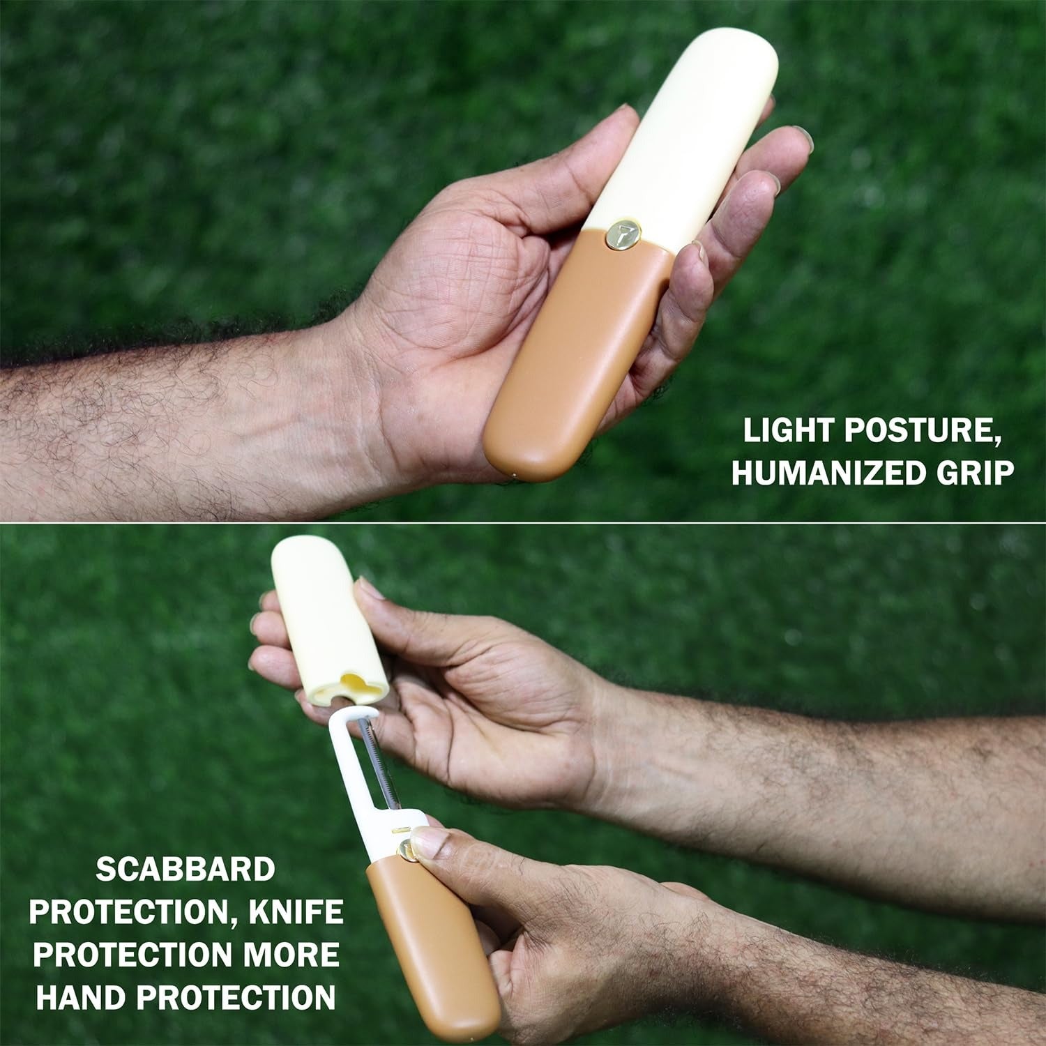 Make food prep faster and easier with this 2-in-1 knife and peeler – the perfect tool for every kitchen or travel kit. Designed for cutting, peeling, and slicing fruits and vegetables, this compact gadget combines convenience, safety, and style
