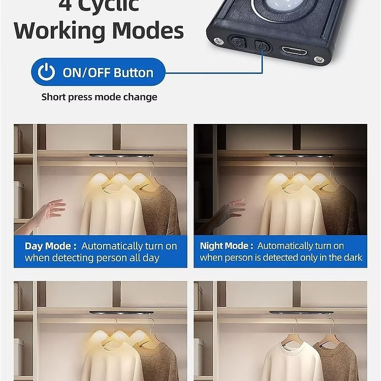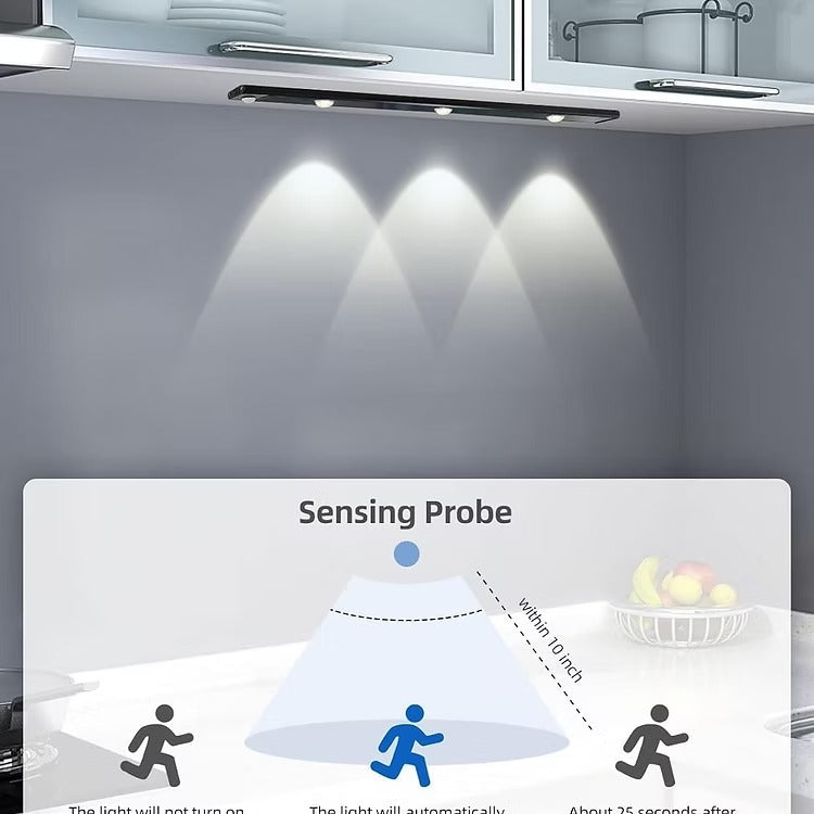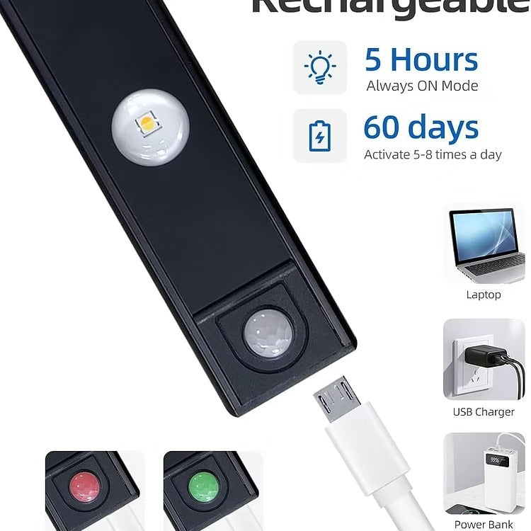 Easy to install and rechargeable via USB, this wireless under cabinet light is designed for convenience, energy efficiency, and stylish lighting. No wiring needed